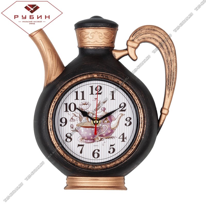 Часы (пластик) фигурные (27х24см) "Чайник" черный/медь