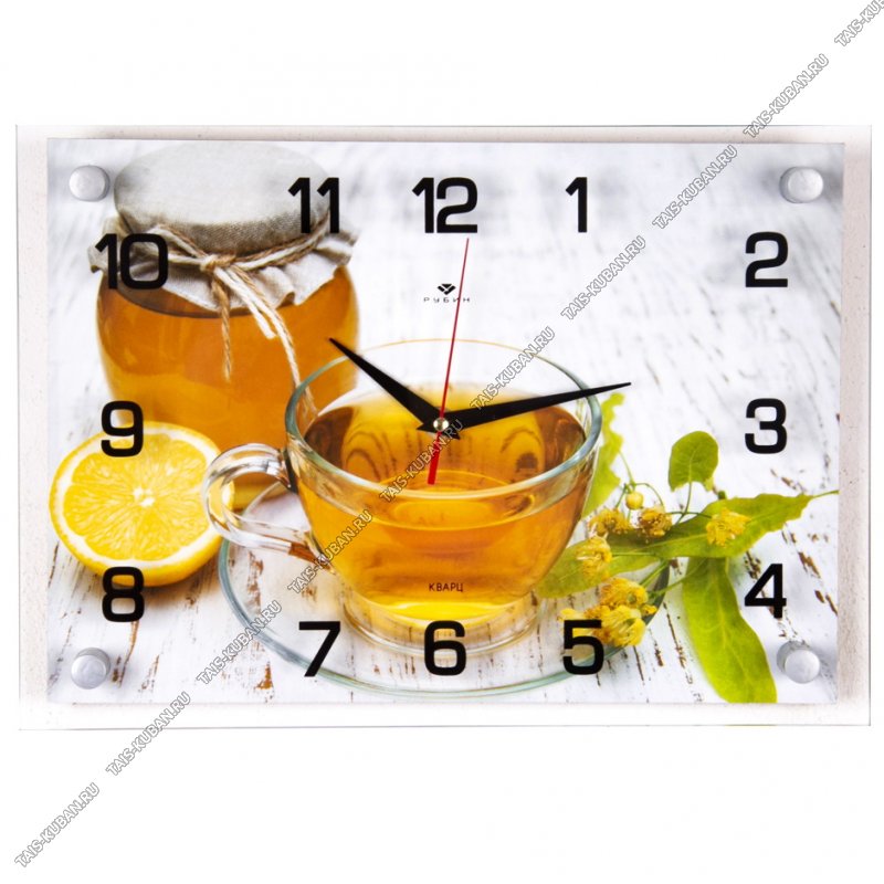 Часы (стекло/ДВП) (35х25см) "Медовый чай" (10)