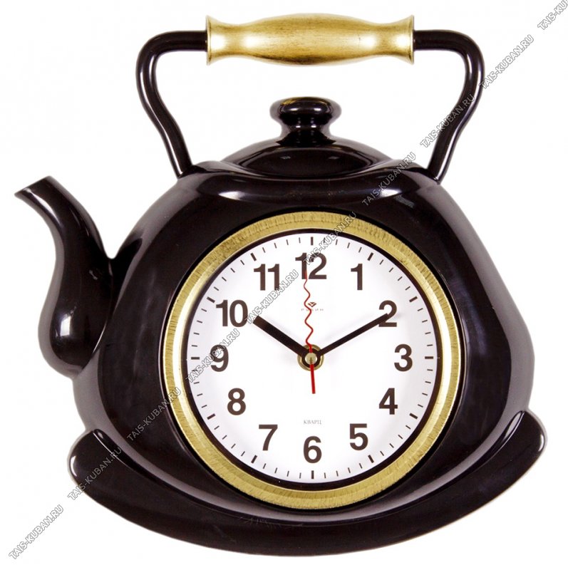 Часы (пластик+стекло) фигурные (27х28см) "Чайник"