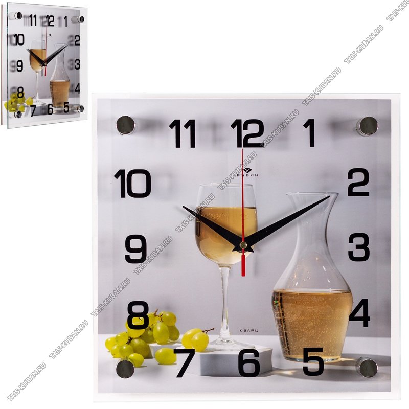 Часы (стекло/ДВП) (25х25см) "Винный брейк" (10)