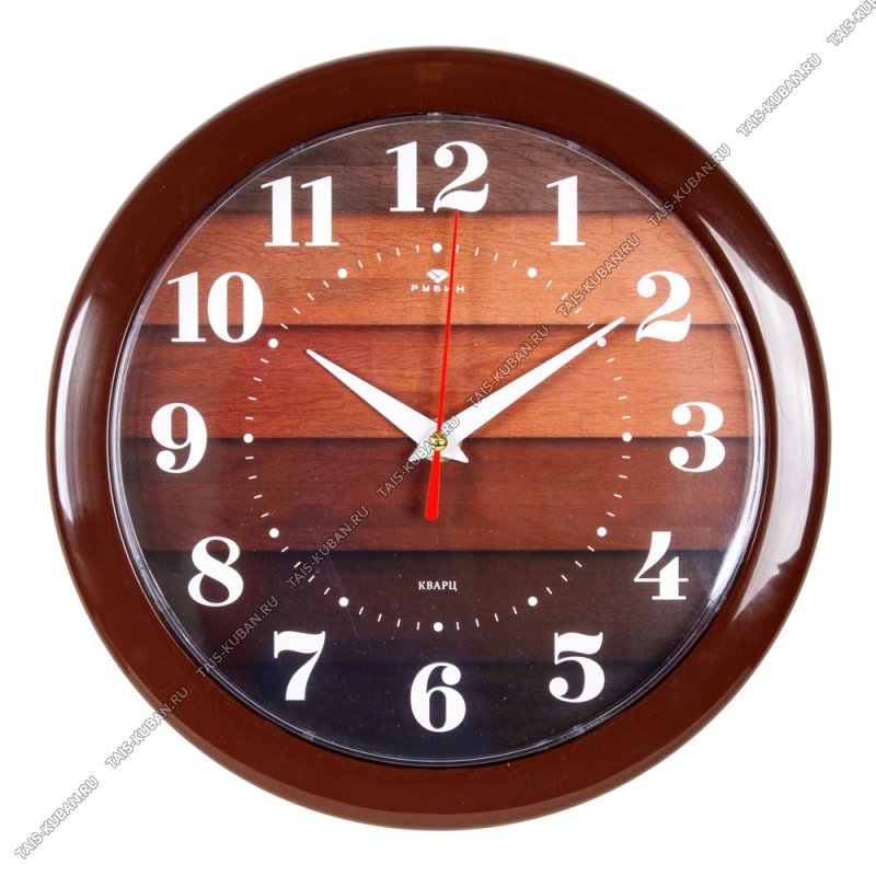Часы (стекло/пластик) кругл.d23см "Дом/Паркет" корич корпус п/у (10)