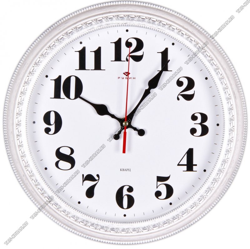 Часы (стекло/пластик) круг.d21см Часы (стекло/пластик) круг.d21см "Классика" широкий белый корпус, круп.цифры п/у (10)