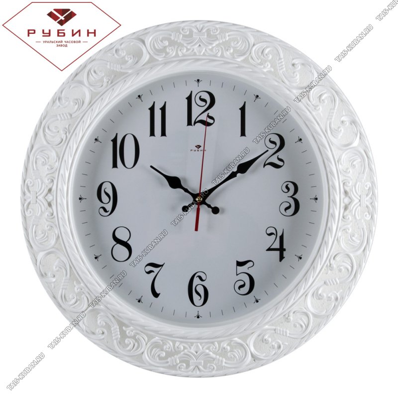 Часы (стекло/пластик) круг.d35см Часы (стекло/пластик) круг.d35см "Версаль" корпус белый,с орнамент п/у (10)