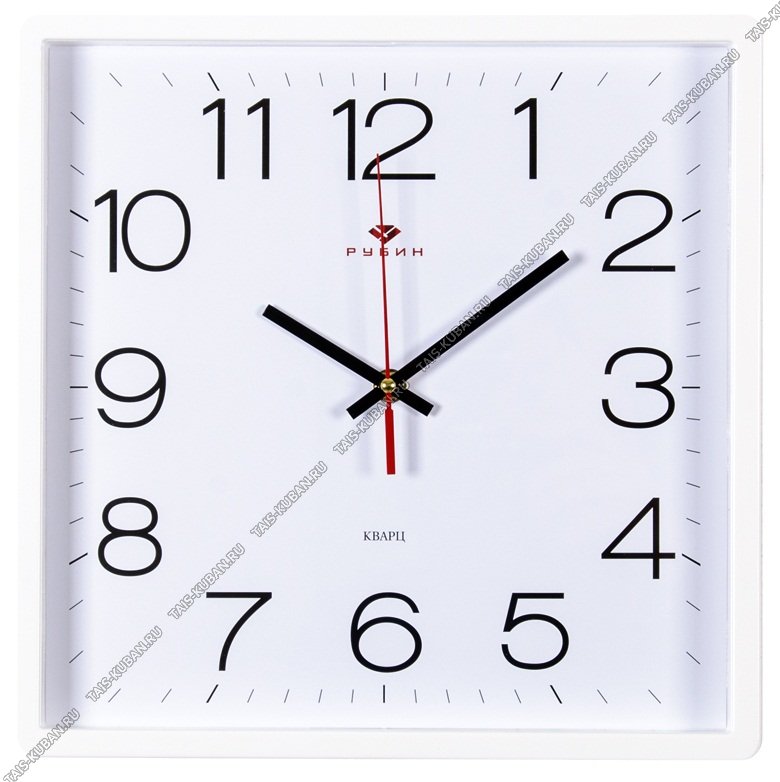 Часы (стекло/пластик) квадр.(30х30см) "Классика" белый,круп.цифры п/у (10)