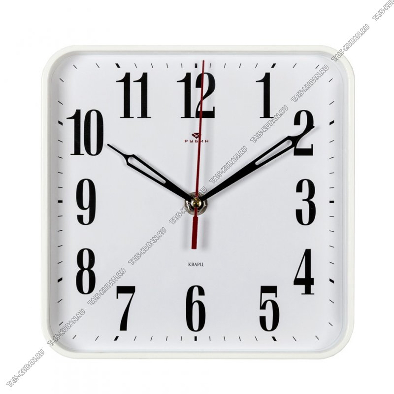 Часы (стекло/пластик) квадр.(19х19см) "Классика" белый корпус,круп.цифры п/у (10)