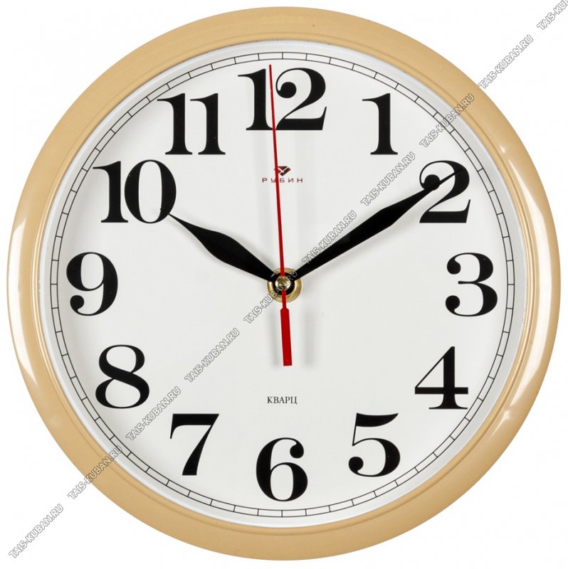 Часы (стекло/пластик) круг.d22см "Офис" бежев.корпус, п/у (10)