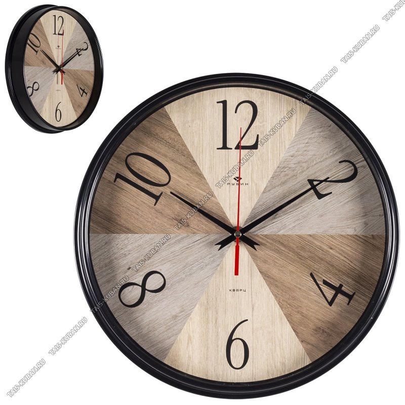 Часы (стекло/пластик) d29см "Текстура дерева"