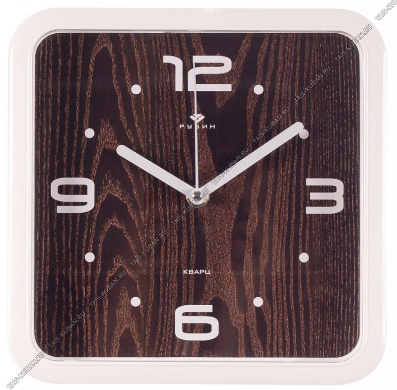 Часы (стекло/пластик) квадрат (22х22см) "Фактура дерево" коричневые/белый корпус
