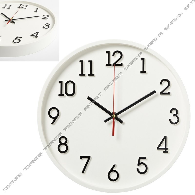 Часы (пластик) d30см Часы (пластик) d30см "Офис" белые+черный, п/у (10)