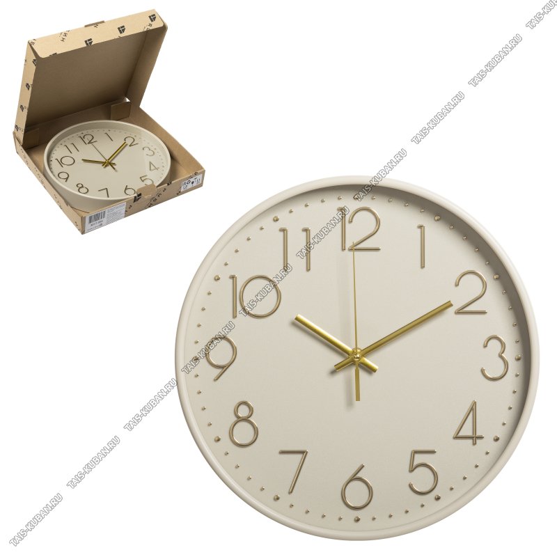 Часы (пластик/стекло) круглые d30см "Амороссо" бежевый корпус, п/у (10) ТМ Рубин