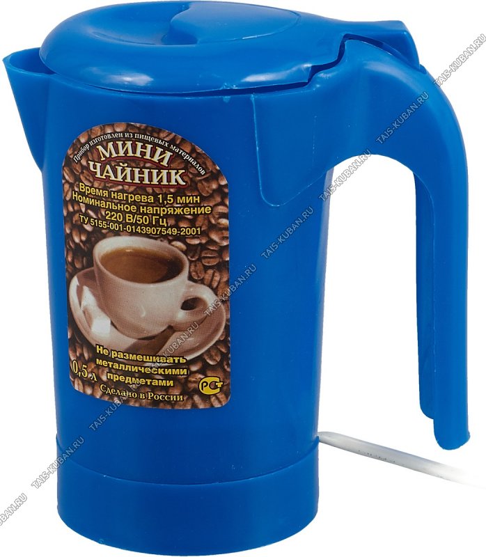 Чайник эл. (пластик) 0,5л 500Вт Чайник эл. (пластик) 0,5л 500Вт "Волжанка" спираль, синий, нагрев 1,5мин (36)