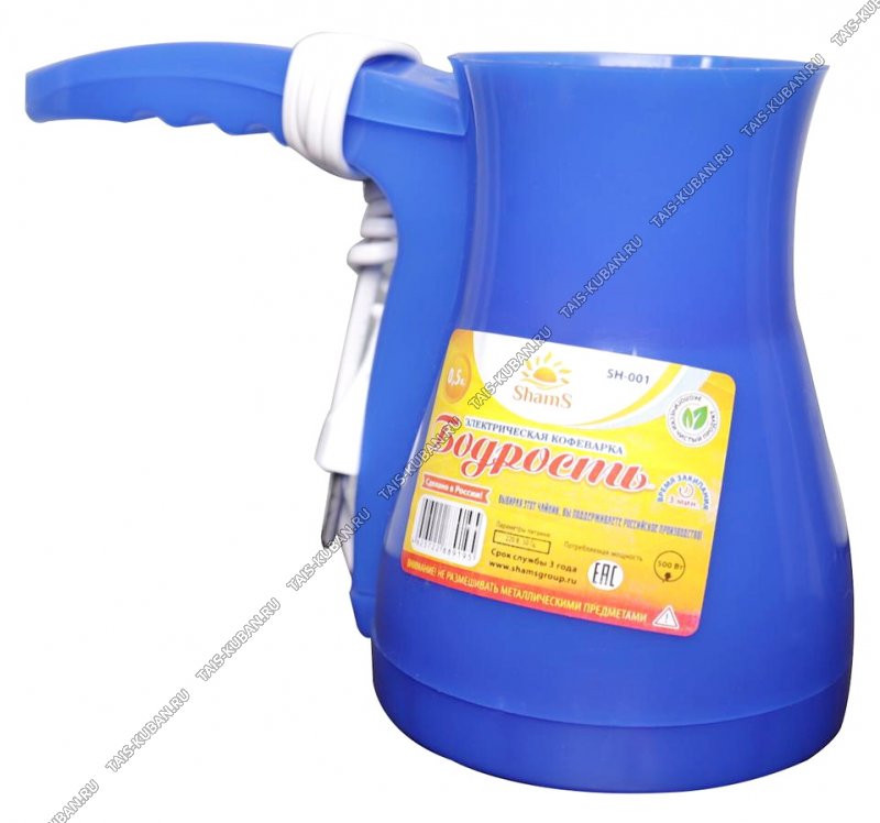 Турка-кофеварка 500мл, "Бодрость" нагревательный элемент-нержавеющий диск, время кипения 3 минуты, пластиковый, шнур 76 см, цвет синий (28)