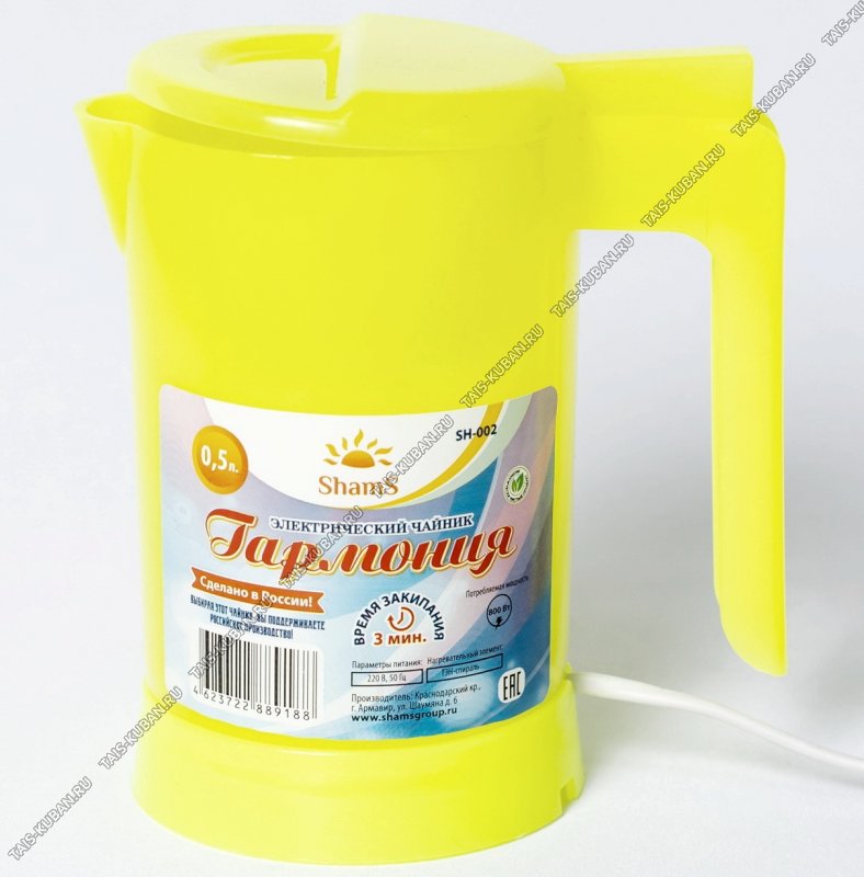 Чайник электрический (пластик) 0,5л 500Вт "Гармония" спираль, желтый