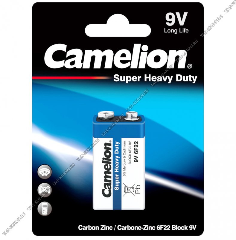 Бат. CAMELION "Super Heavy Duty" blue 6F22- 1шт.крона 9V (12)