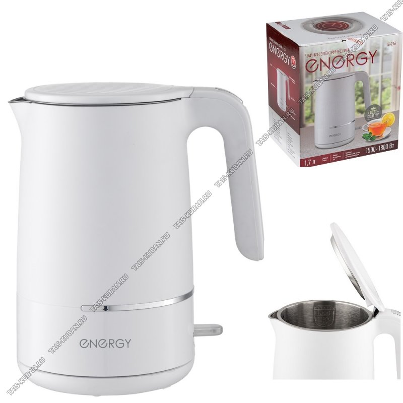 Чайник пластик+нерж 1,7л 1800Вт диск,2-ная стенка (внутри нерж.сталь), автооткл,белый (12)