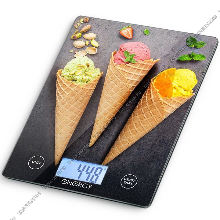 Весы кухонные эл. (стекло) до 10кг "Красочное мороженое", пит.бат.CR2032 (12)