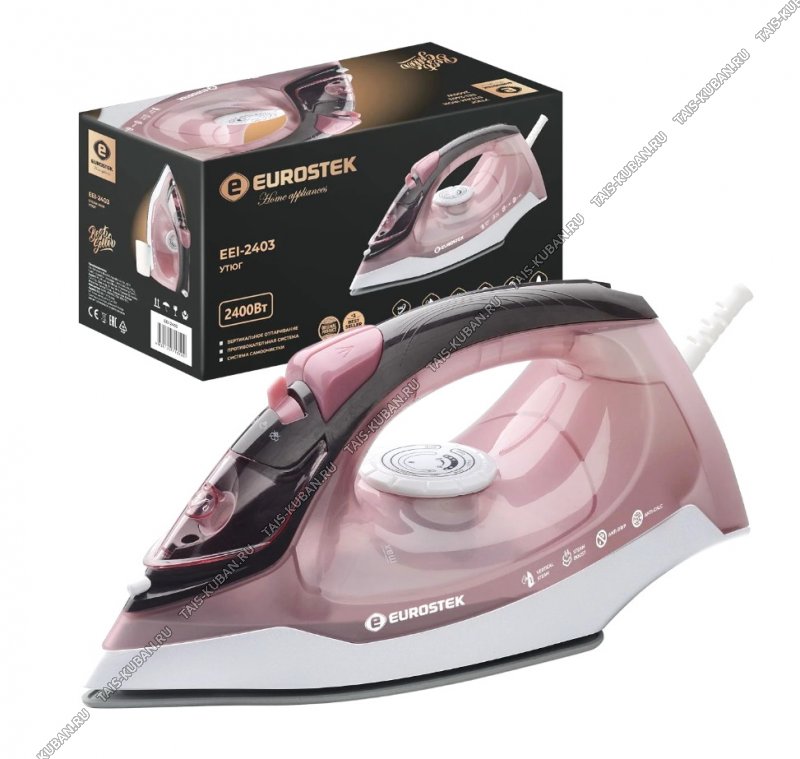 Утюг электрический Eurostek EEI-2403 мощность 2400В, керамическая подошва, система самоочистки, встроенная защита от накипи, функция разбрызгивания, вертикальное отпаривание, мерный стаканчик