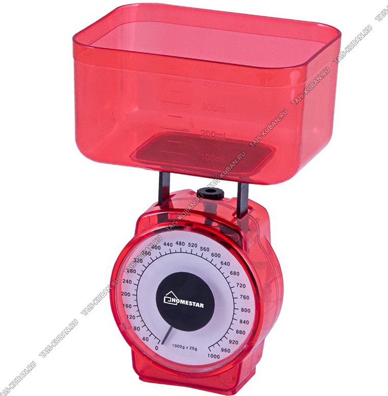 Весы кухонные с чашей, механ до 1кг, дел.10г,чаша 400мл,красн.(40)