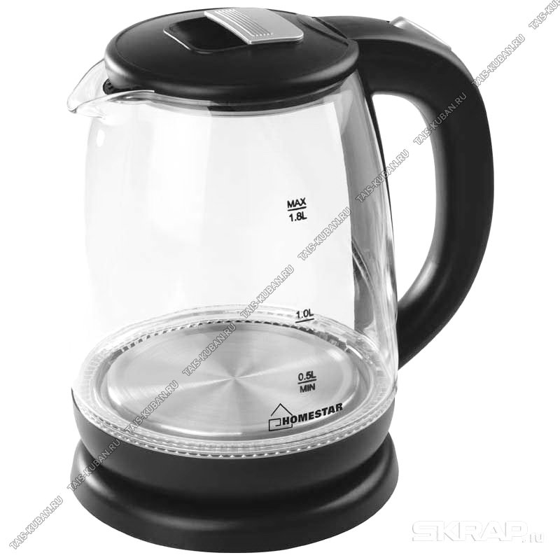 Чайник стекло 1,8л 1500Вт диск, черный/сталь (12) Чайник стекло 1,8л 1500Вт диск, черный/сталь (12)