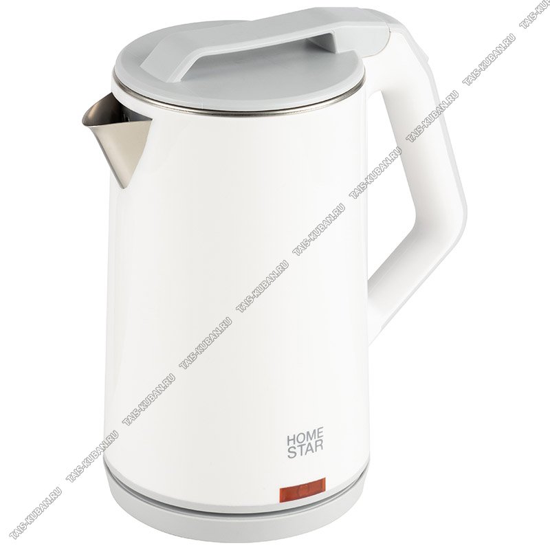 Чайник пластик+нержавеющая сталь 1,8л 1500Вт диск,двойная стенка (внутри-нерж.сталь),автоотключение,защита без воды,поворот на 360`,белый (12)