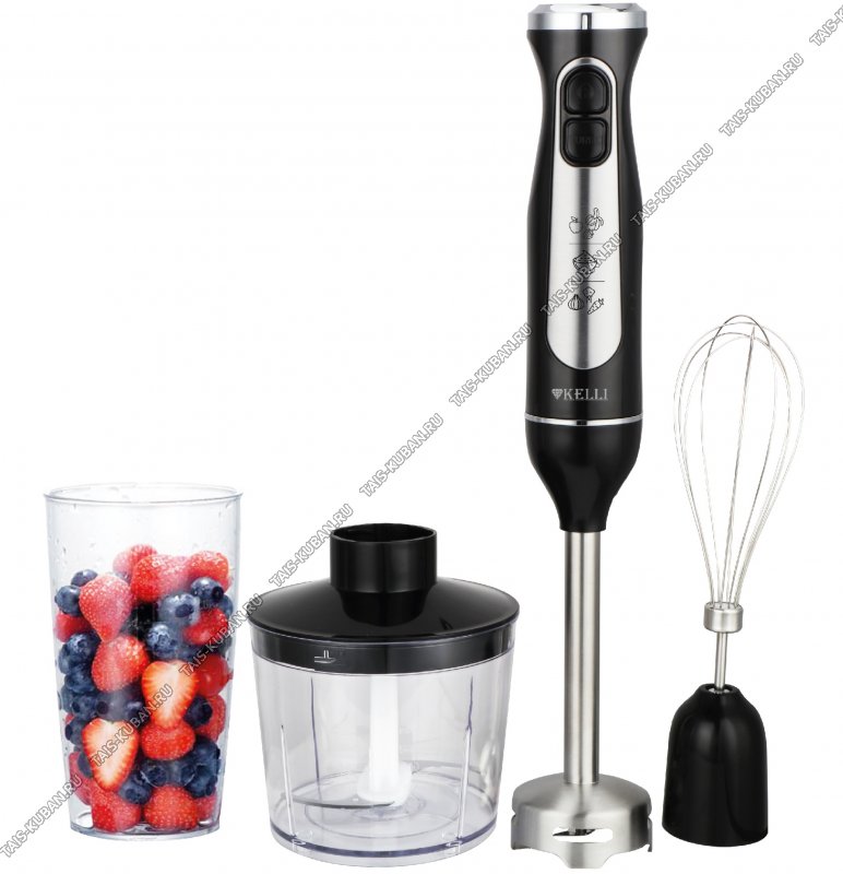 Блендерный набор 1500Вт 2 скорости, измельчитель 0,5л, 2 насадки (взбивание,измельчение), мерный стакан 0,7л, погружная часть, из нержавеющей стали, пластиковый корпус, цвет черный (6)