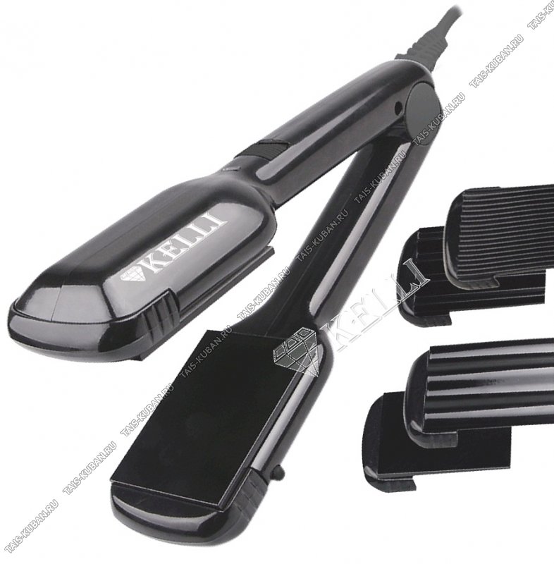 Выпрямитель д/волос керам 45Вт, пласт. (4х6.5см) 4в1 (выпрямлен,гофре мелк/крупн,волна),max t160, нас.с керамико-турмалин.покр.