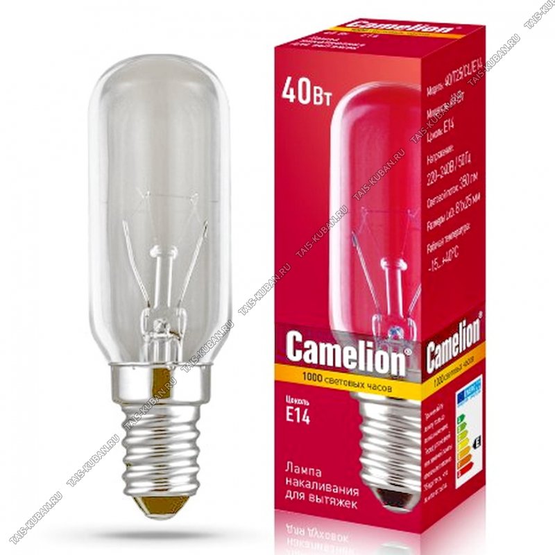 Camelion накалив. (д/вытяжек) прозр 40Вт Е14,светов.поток 350Лм (81x25мм) (10)