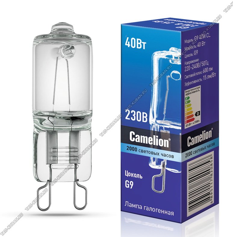 Camelion (галогеновая,без рефлектора) G9 CL 40Вт,220V,световой поток 600Лм,h41 d14мм (5)