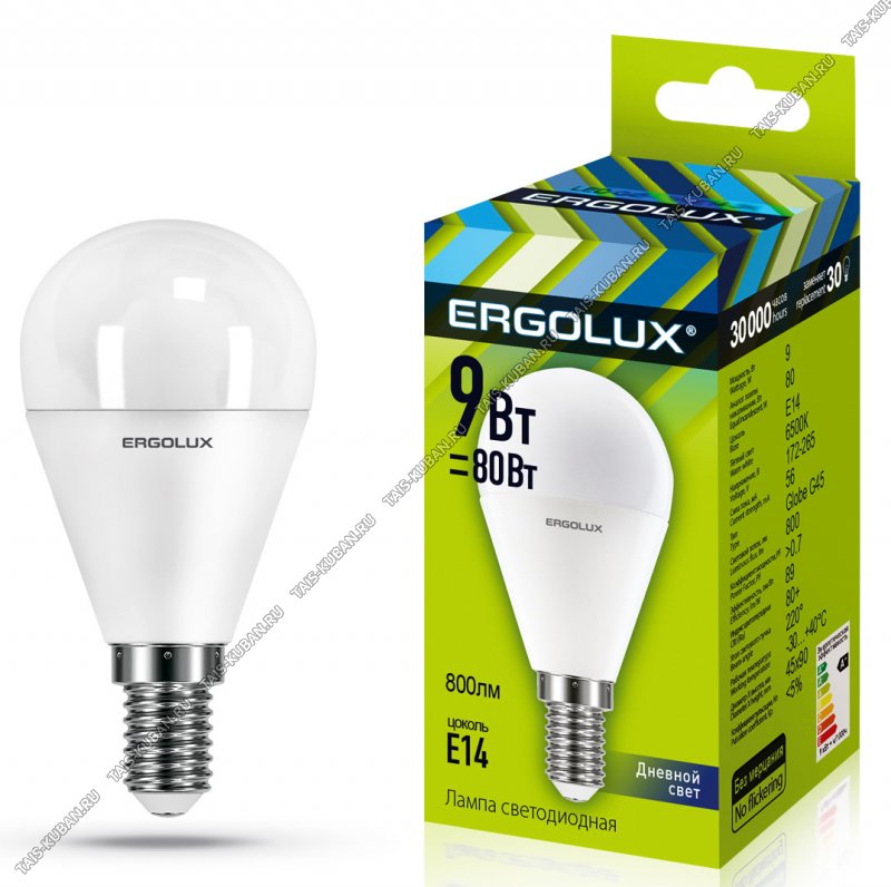 Ergolux-Шар E14 9Вт,дневн.6500К,светов.поток 800Лм (аналог 80Вт обыч.лампы) h92мм d45мм.(10) Ergolux-Шар E14 9Вт,дневн.6500К,светов.поток 800Лм (аналог 80Вт обыч.лампы) h92мм d45мм.(10)