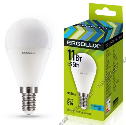 Ergolux-Шар E14 11Вт,холодн.6500Вт,светов.поток 925Лм (аналог 95Вт обыч.лампы) h92 d45мм (10) Ergolux-Шар E14 11Вт,холодн.6500Вт,светов.поток 925Лм (аналог 95Вт обыч.лампы) h92 d45мм (10)