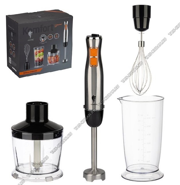 (измельчитель-нож 2-х лопаст прямой,венчик) измельчитель 0,5л, стакан 0,6л, погружная часть/ножи нержавеющая сталь