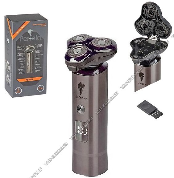 Бритва эл. роторная (аккум) 5Вт на под-ке-зарядка, 800мАч,блок плав.голов+насад(тример),время раб.90мин,LEDдиспл,инд.заряда, 45лезв.нерж.сталь,компл.щеточка,защ.крышка,заряд.от USB,коричневый(12)