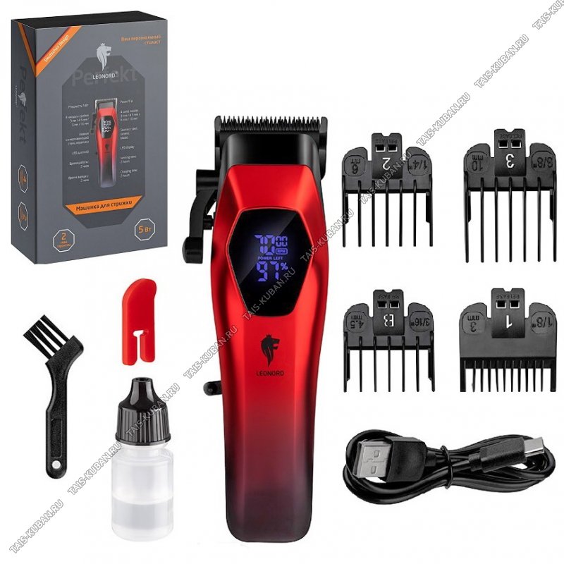 Машинка д/стрижки (аккум) 5Вт, 4насад (3-10мм),лезвия сталь,керамика,LED дисп, в комп-те USB шнур,щеточ,масло, красный/черн (40)