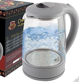 Чайник стекло 2л 1500Вт диск,подсвет,пов.360,автооткл,защ.б/воды,серый (12)