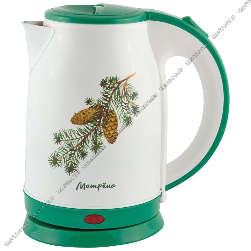 Чайник нерж.1,8л 1500Вт диск,защ б/воды,повор.360,свет.индик,автомат выкл "Еловая ветка/Шишка" бел/зелен (12)