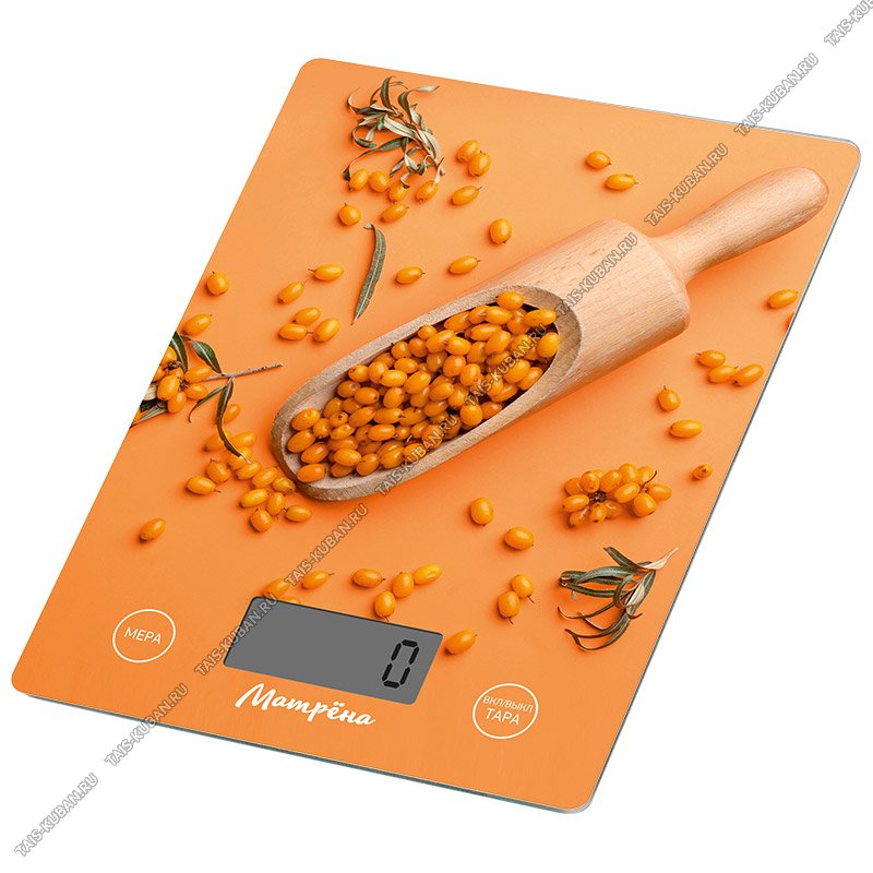 Весы кухонные эл. (стекло) до 7кг "Облепиха" дел.1г,ф-ия тара,LCD дисп,сенс.управ, автооткл,пит.бат.CR2032 (20)