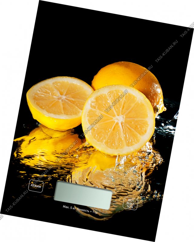 Весы кухонные эл. (стекло) до 7кг "Лимон" прям.(14,5х20см) дел.1г,сенсор.управ,автооткл,ф-ция тара,пит.2*ААА (24)