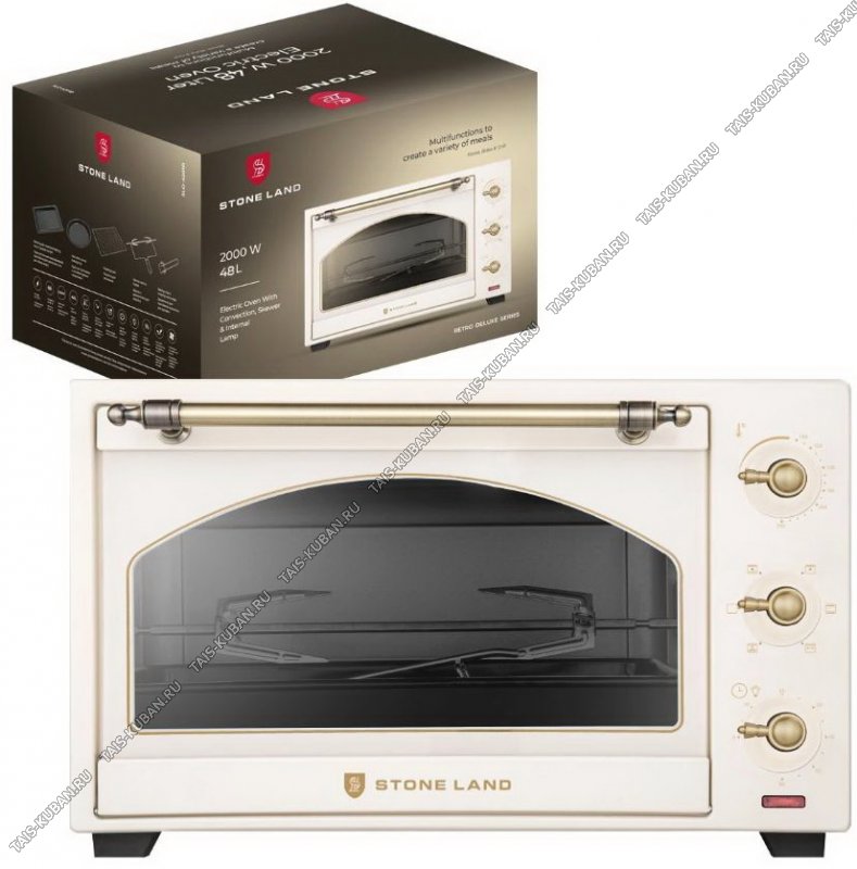 Духовка (печь) электрическая 48л, 2000Вт кремовый (конвекция/вертел для гриля) 5режимов работ, 4нагревательных элемента, антипригарное пократые камеры, тамер на 60минут, внутренняя подсветка, индикатор включения, 2протвиня- эмалированный прямоугольный/круглый с АП, решетка