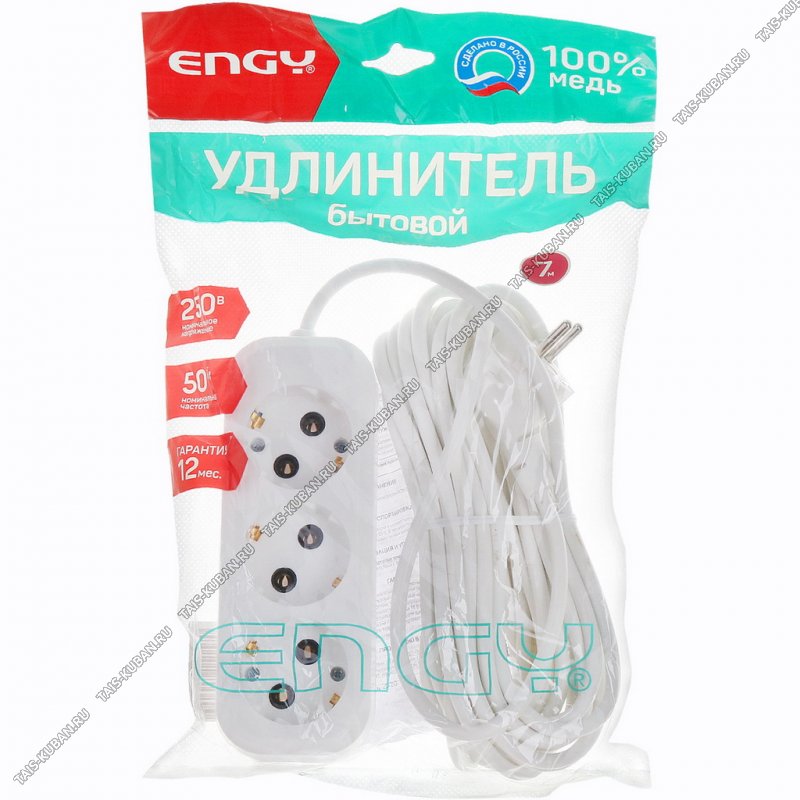 Удлинитель Удлинитель "Стандарт." 3 гнезда, L7м,ПВС сеч.2х1,5 ,16А,3кВт,б/зазем.(35)