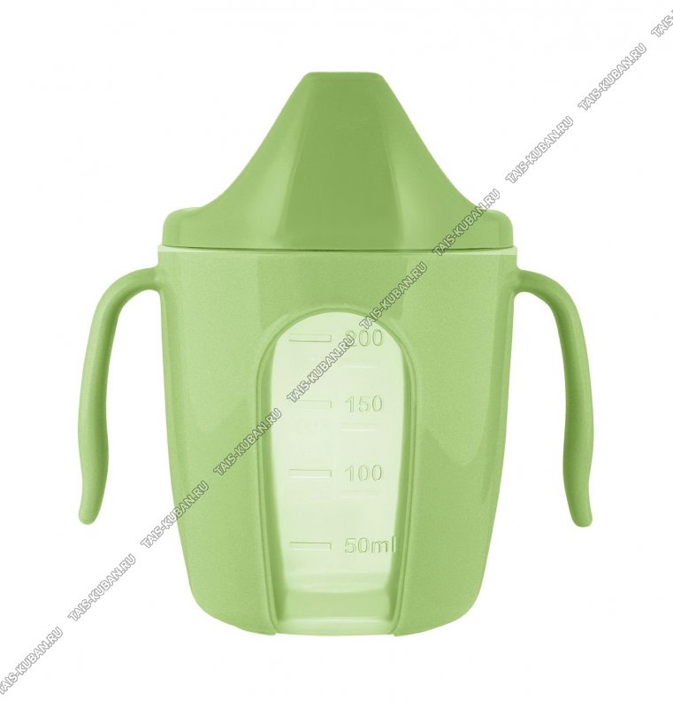 Поильник детский 0,27л фисташка,с 2-мя ручками (d8 h11,5см) мерная шкала,прозрачное окошко Plast Team(13)
