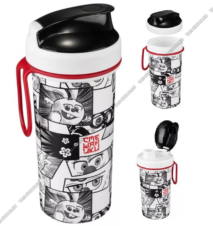 Стакан 0,4л д/холодных напитков "Смешарики" белый (d7 h16см) откидная крышка,с петлёй, Бытпласт (12)