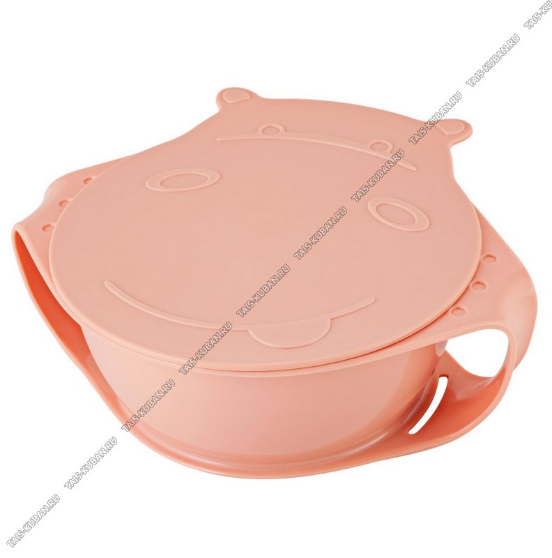 Тарелка глубок,детск с крыш 0,45л "Бегемотик" с крыш,персик (d15 h5см), Plast Team (13)