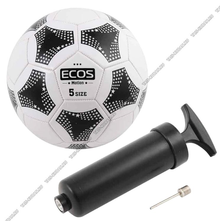 Мяч футбол d22см, вес 280г "Ecos" +насос пластик. с иглой,ПВХ,черн/бел,машин.шов (24)