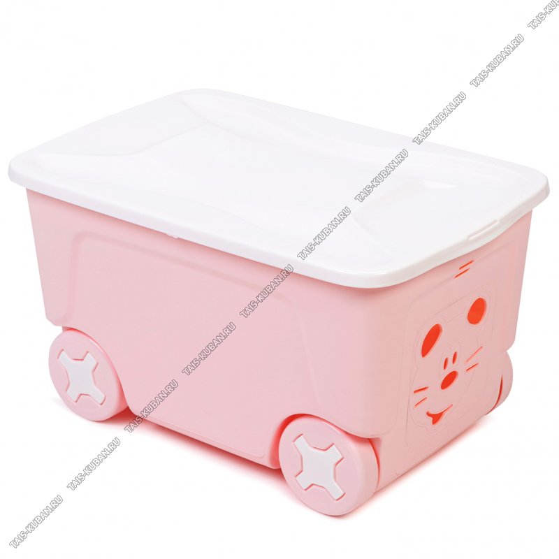 Ящик д/игрушек 50л "Котик" с крышкой,розовый/белый (60х38 h33см) на колес (4) Plast Team