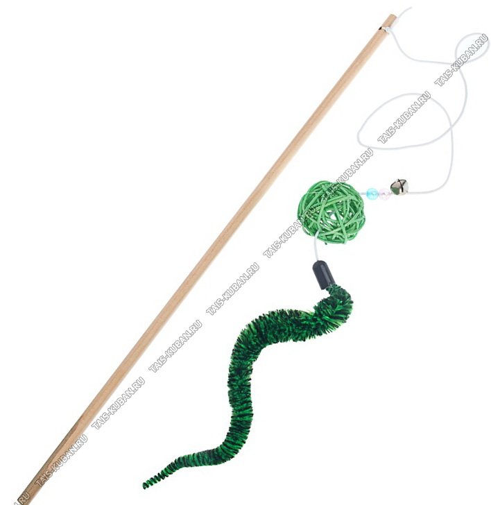Игрушка-удочка "Плетеный шар" L40см пластик, полиэстр, лоза, погремушка, микс
