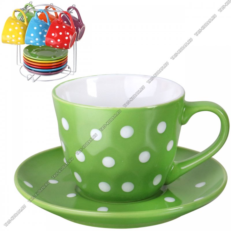 Чай-12пр мет/под 250мл "Белый горох/на радуге" 6цветов (бл-круг/чаш-класс) п/у
