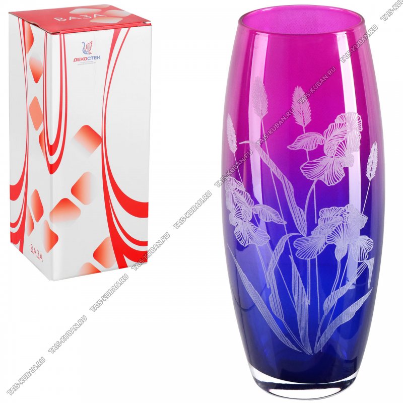 Ваза h26см "Графика цвет/Ирисы" (ф.бочка) п/уп (6)