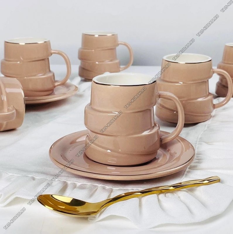 Кофе-12пр Lenardi 140мл "Tower/Молоч.шоколад" золот.кант (чашка-фигур.цилиндр) п/у (8)