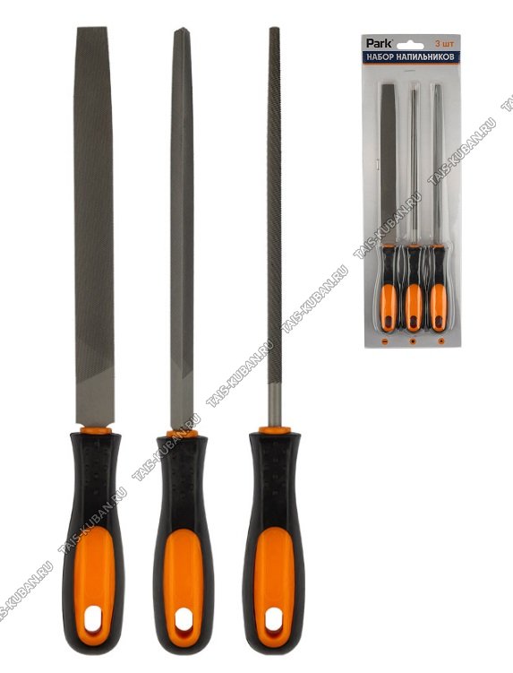 Н-р напильник 3шт 200мм (круг,плоск,3-х.гран) пласт.рукоятки (24)