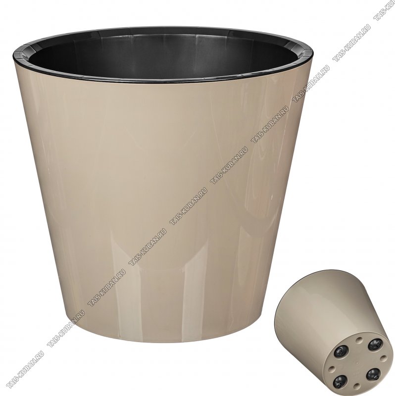 Кашпо "Розмари" беж.глянец 16л d33 h30,5см,колёсики,вкладыш черный (4)